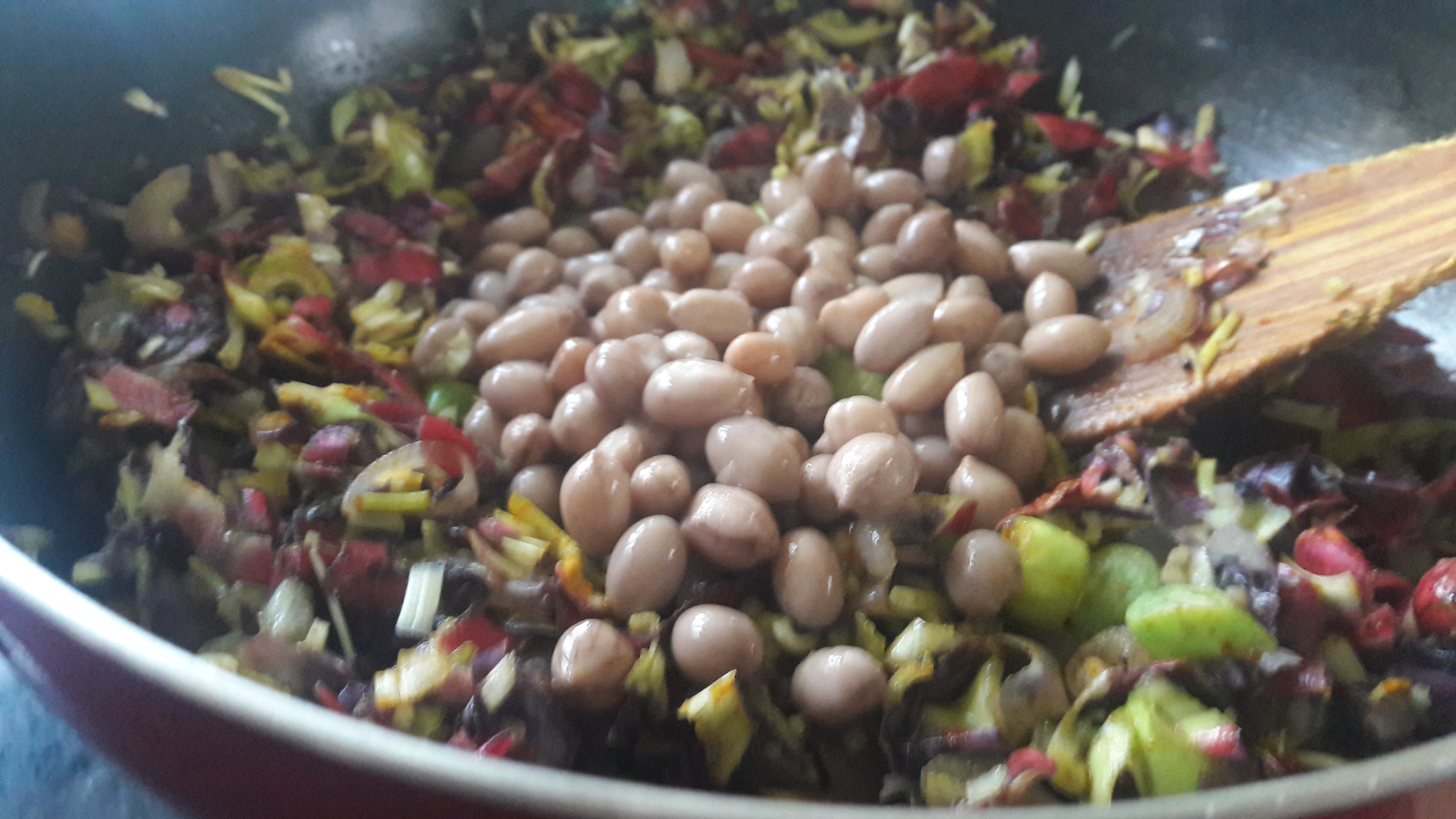 - Mix well and let it cook for a minute or two. Need not add water as the flower lets out water. Add cooked peanuts to it.