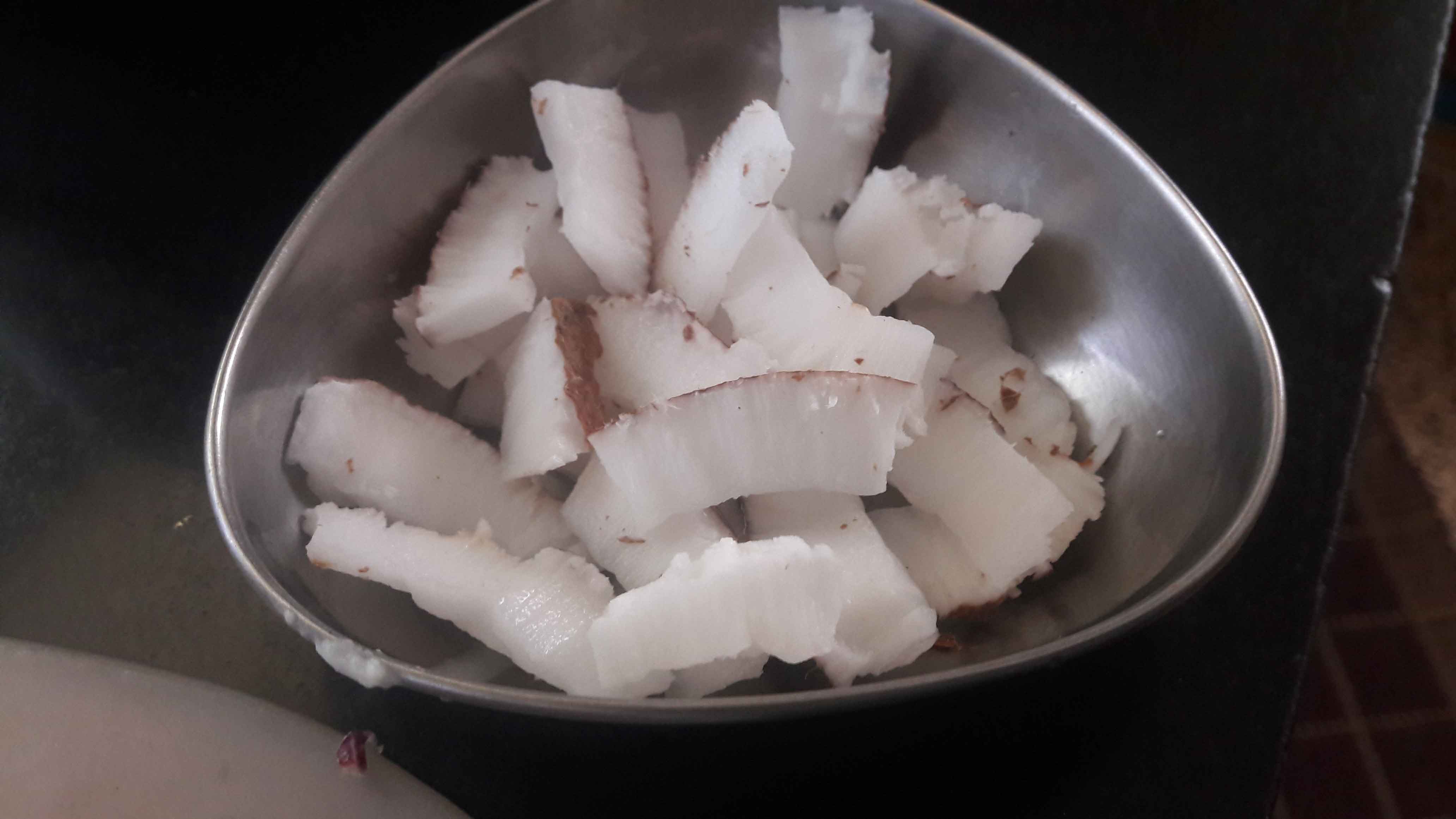 - Cut Thin slices of coconut pieces.