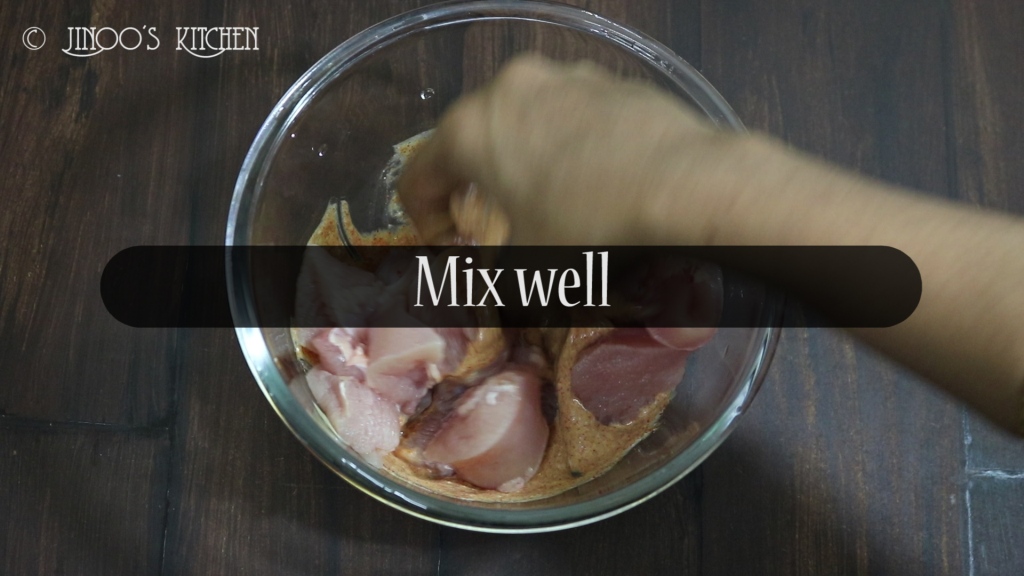 - Put in the chicken pieces and mix again