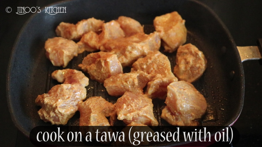 how to make chicken tikka recipe in tawa with step by step pictures.