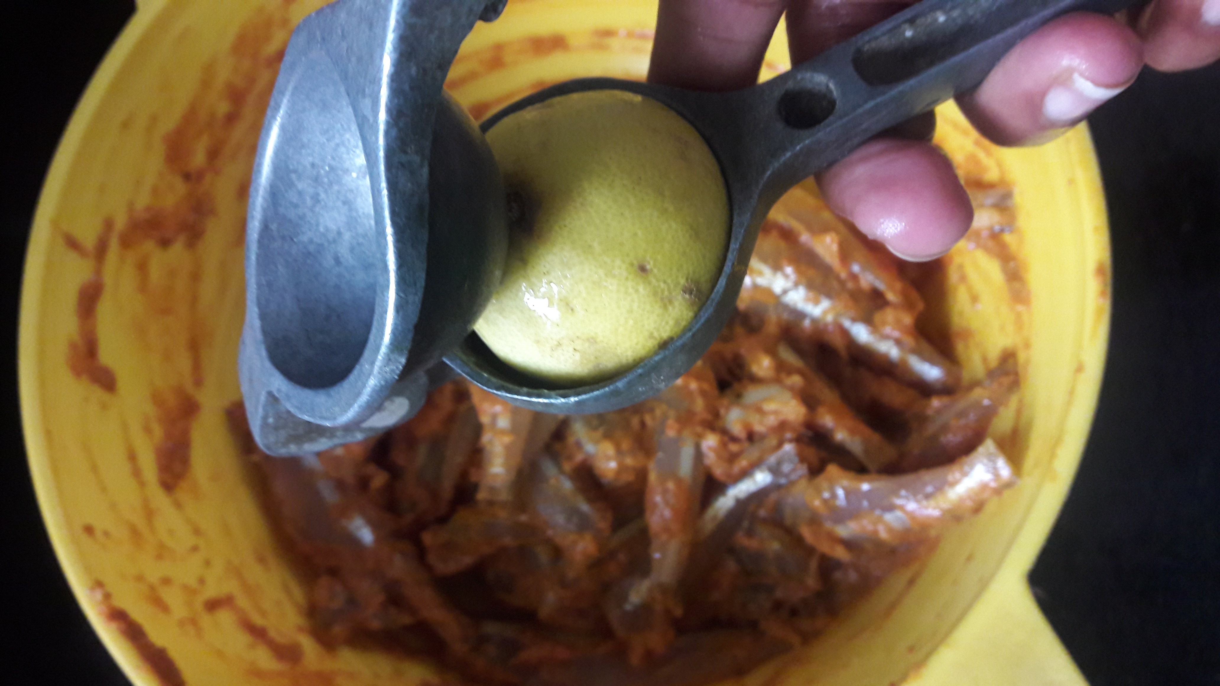 - Add egg, crushed garlic, crushed peppercorns and lemon juice and mix well. Put in finely chopped curry leaves and Let it sit for 30 min to an hour.